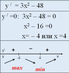 Мысал: y=х3-48х+17 экстремум нүктелерін