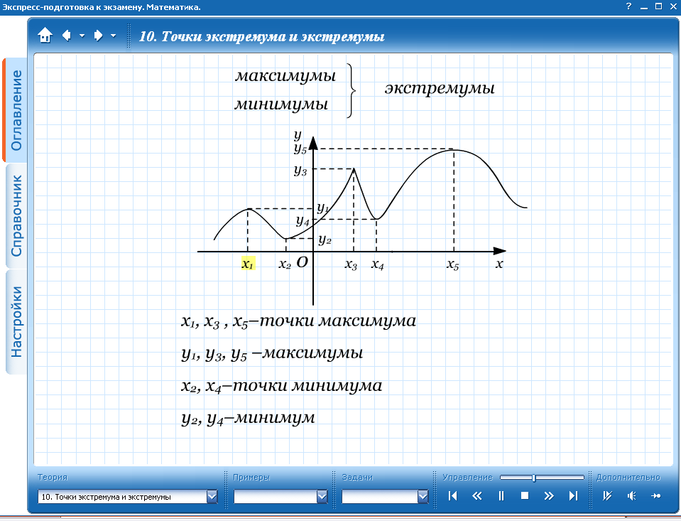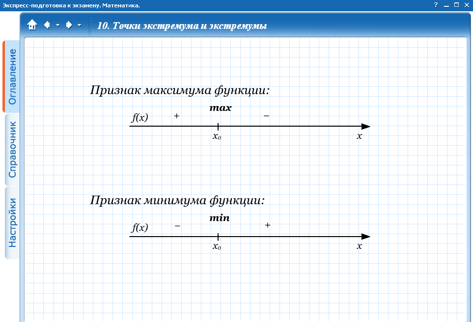 Дескриптор: функцияның кризистік нүктелерін табады: экстремум нүктелерінің бар болуының жеткілікті шартын қолданып, максимум және минимум нүктелерін табады |