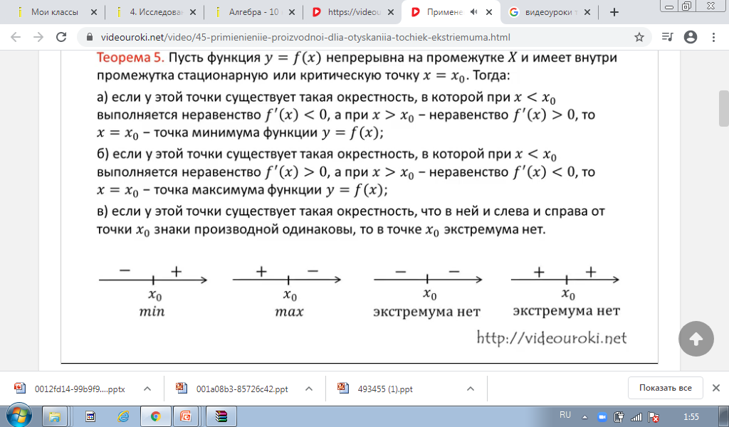 Анықтама: F,(x0) туындысы нөлге тең немесе туындысы болмаса онда х0 нүктесі f(x) функциясының сындық нүктесі деп аталады. |