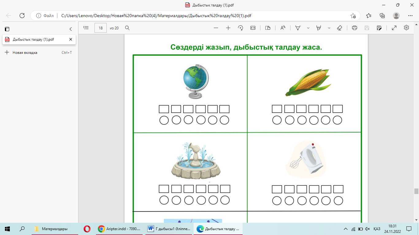 3 тапсырма: «Көгершіннің хаты» әдісі -Сандардың ретіне сәйкес әріптерді жазыңдар. Қандай ән атауы шықты. Айгөлек Айгөлек сөзіне дыбыстық талдау жасап, буынға бөліңдер. Сергіту сәтінде «Айгөлек» әнін айтқызу. (Д) 4-тапсырмада дәптермен жұмыс жүреді. Жазылым 1. Партада дұрыс отырғызады. 2. Жазуға даярлауда бала қолының ұсақ бұлшықеттерін дамытатын жаттығулар жасатады.