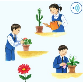 . - Суреттен кімдерді көріп тұрсыңдар? -Олар не істеп жатыр? Неліктен? -Гүлдер туралы не білесіңдер? -Гүл не үшін керек? -Бұл гүлдерге қандай күтім жасап жүрсіңдер? -Енді гүл сөзіне дыбыстық талдау жасаңдар. -Гүл сөзін буынға бөліңдер. Бөліне ме? -Дұрыс айтасыңдар, гүл сөзі бір буынды сөз. -Ә әрпін санағыштардан, не қарындаштардан жасап көріңдер. -Г әрпінің жазбаша түрімен таныс болыңдар.