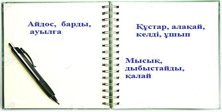 1.2.9.1 - Дыбыстардың мағына ажыратушылық қызметін түсіну. 1.2.1.2 - Оқудың түрлерін (буындап оқу,жиі кездесетін сөздерді тұтас оқу,түсініп оқу) қолдану 1.3.11.1 - Сөйлемді бас әріптен бастап жазып,сөйлем соңына тыныс белгілерін қою. |
