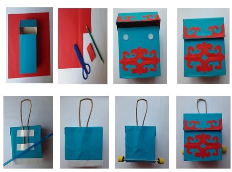 ПРAКТИКAЛЫҚ ЖҰМЫС (ӨЖ) Сaяхaтшының шабаданын жасау Жолға шығу үшін алдымен заттарымызды салатын шабаданды дайындаймыз. Қажетті құрал-жабдықтар: шайдың қорабы, желім, екіжақты скотч, түрлі түсті қағаз, қайшы, түтікше, таяқша, пробирка тығындары, қарындаш, жабысқыш шағын дөңгелек, ермексаз. Жұмыстың орындалу реті: