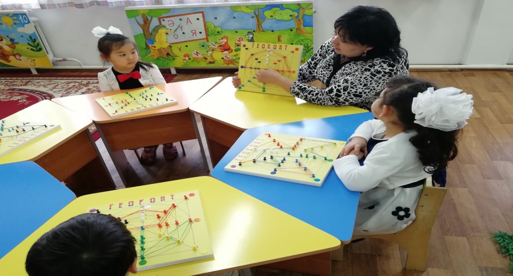 Инновациялық үрдіс: Воскобовичтің дамытушылық ойындары: «Геоконт», «Екі түсті шаршы», «Төрт түсті шаршы» конструкторлары, «Сиқырлы шам», «Дамытушы баулар», «Ларчик кілемшесі» ойындар жинағы, қызықты сандар, математикалық белгілер, геометриялық пішіндер, түрлі-түсті баулар.