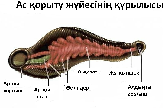 орналасқан. Ас қорыту жүйесі - алдыңғы, ортаңғы және артқы ішектер. Алдыңғы сорғышының