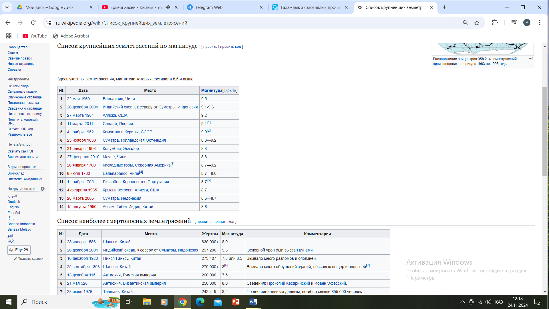 (ЖТ) Жеке тапсырма Соңғы 200 жылдағы жойқын жер сілкіністерін анықтаңыздар