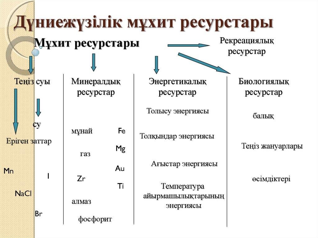 Дүниежүзілік мұхиттың ең басты байлықтары;