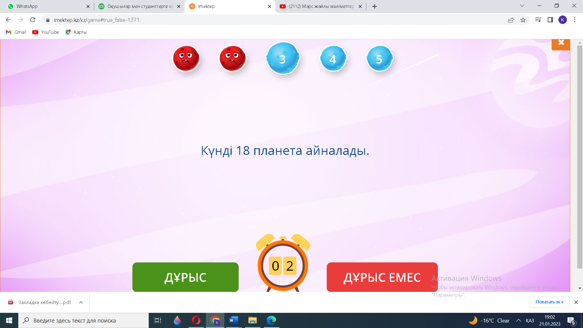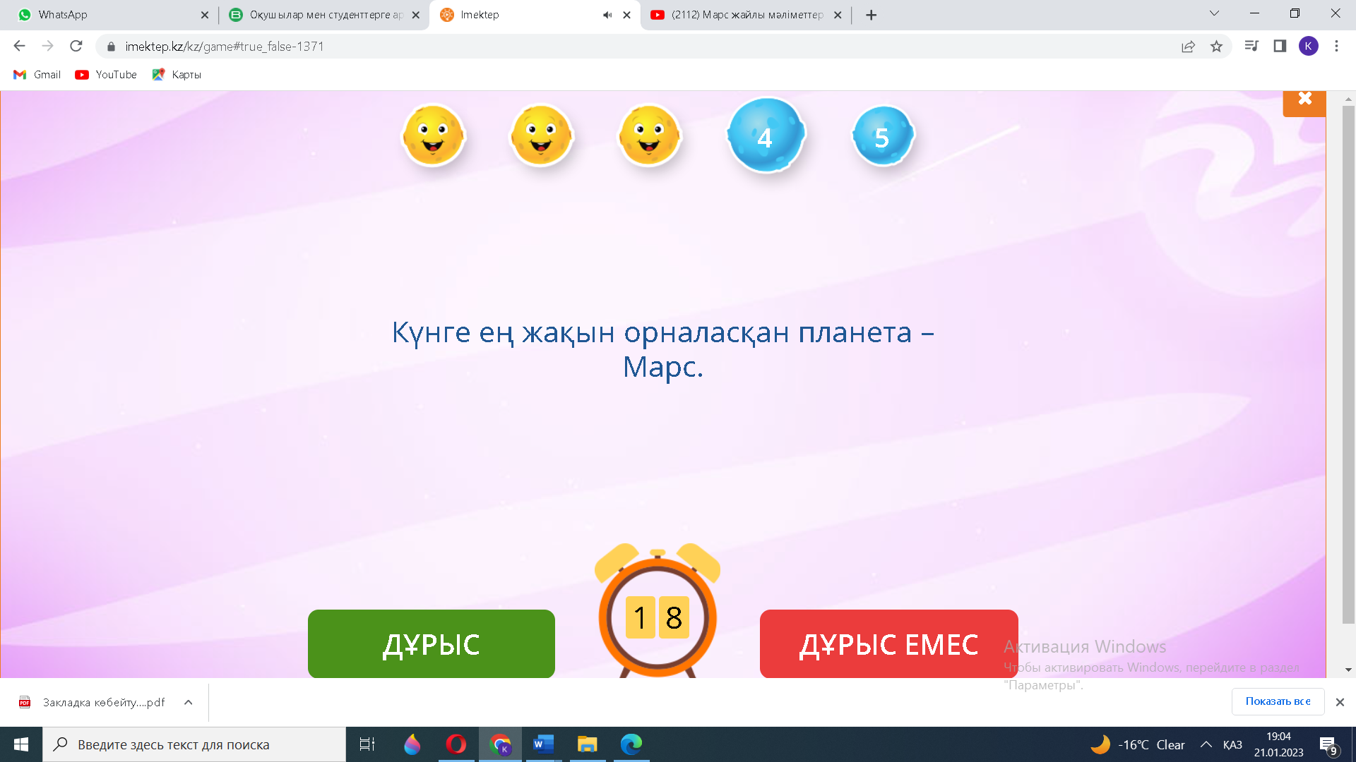 Сабақтың тақырыбы: «Ғаламшарлар қандай болады? » Сабақтың мақсатымен таныстырамын Ұғынуды ұйымдастыру https://imektep.kz/kz/garysh-video Ғаламшарлар туралы мәлімет алады. Оқулықпен жұмыс