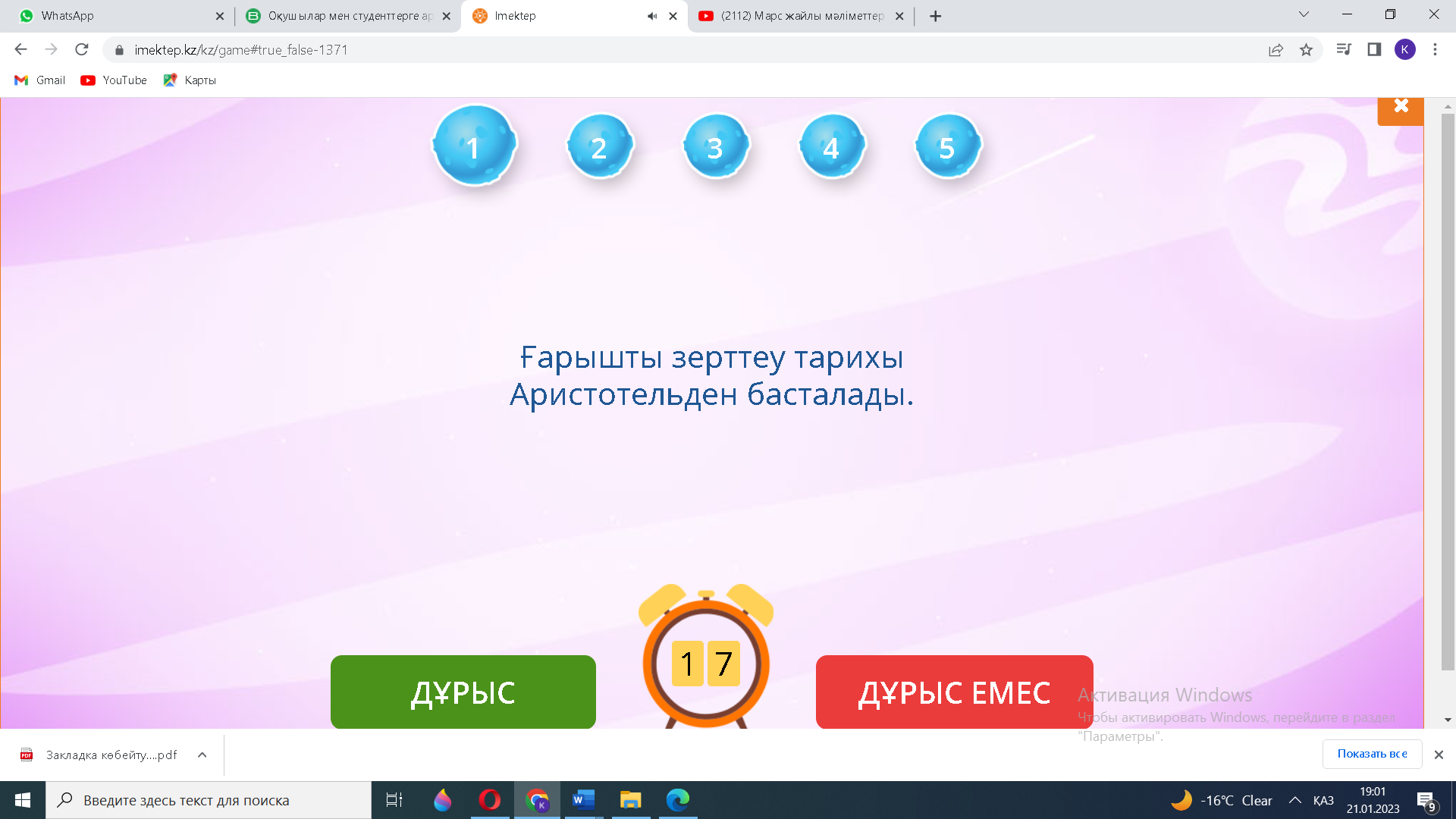 Қалыптастырушы бағалау тапсырмасы «Ақиқат», «Жалған» ойыны