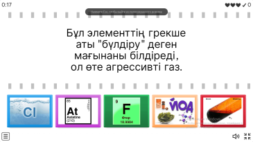 -галоген молекулаларының электрондық формулаларын құрастыру және кристалдық тор түрі мен байланыс типін анықтайды. -топта галогендер қасиеттерінің өзгеру заңдылықтарын болжайды. |