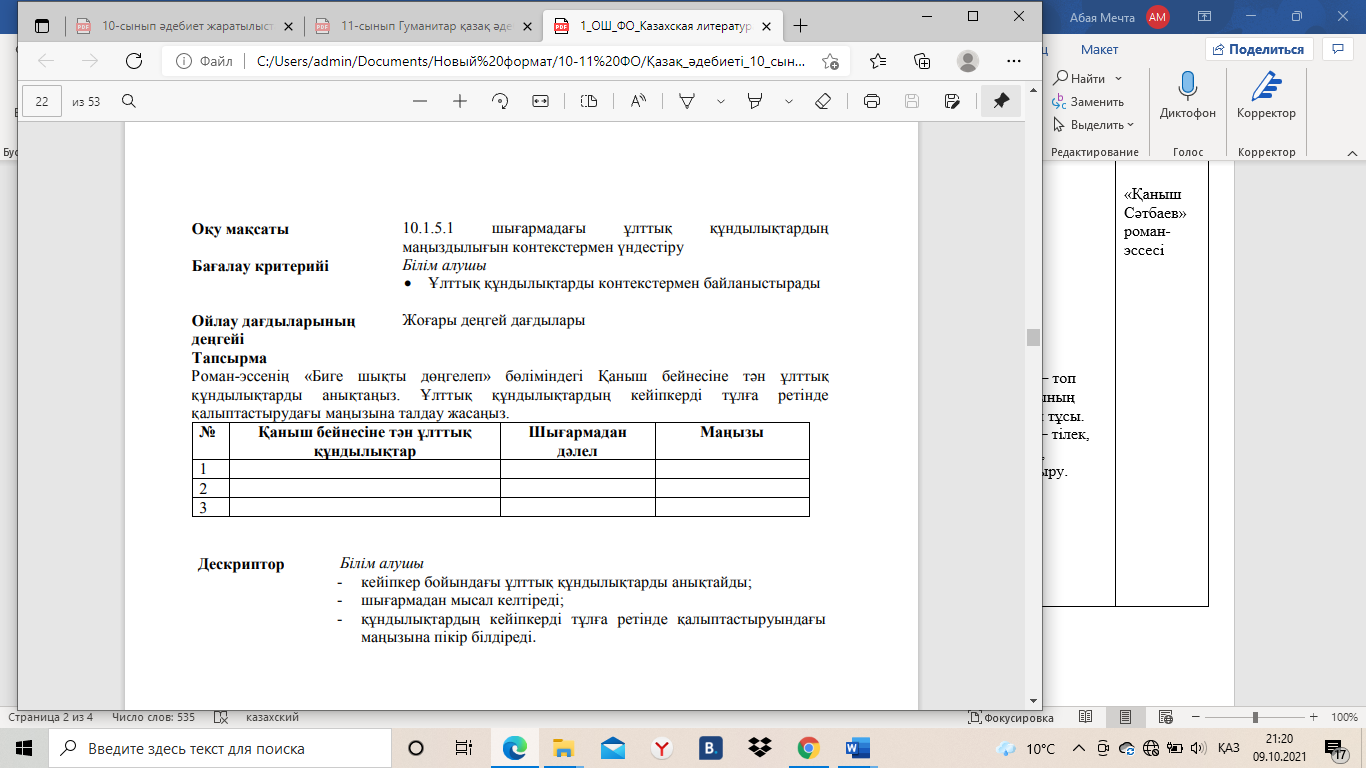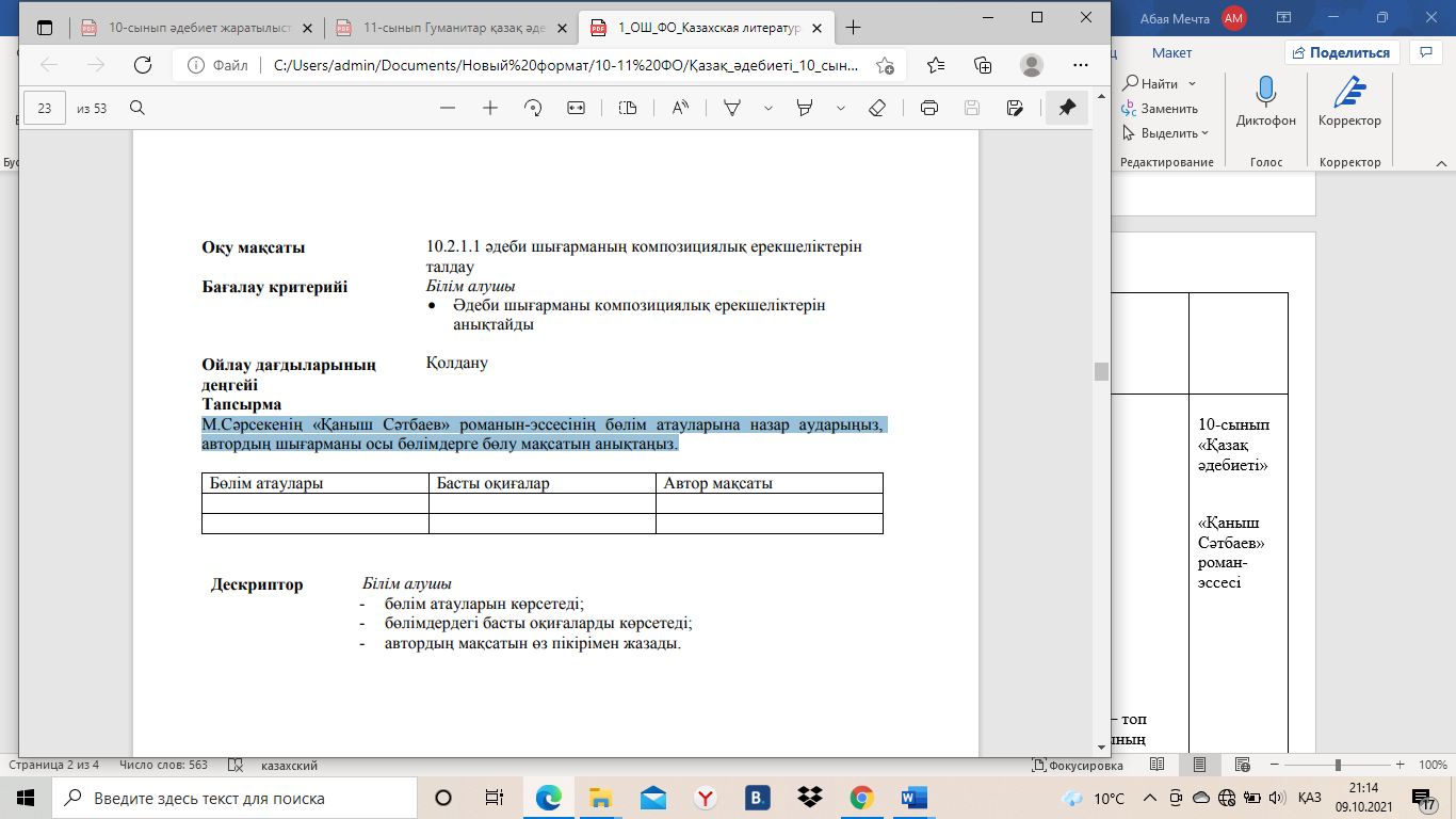 10.3.2.1 көркем шығармадағы көтерілген мәселелердің жаңашылдығына баға беру. |