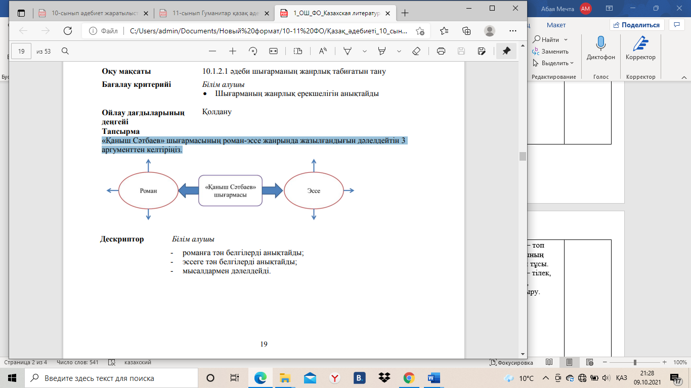 10-сынып «Қазақ әдебиеті» «Қаныш Сәтбаев» роман-эссесі