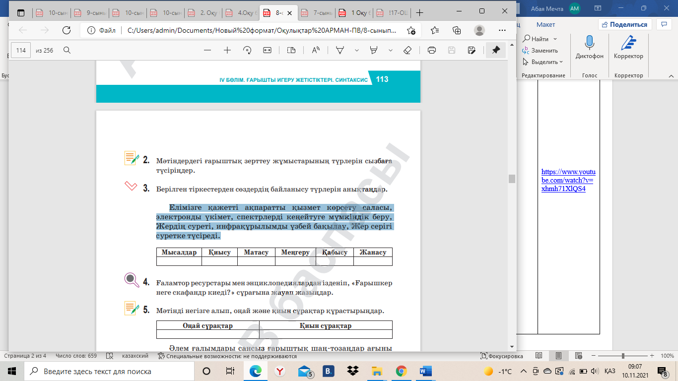 8.1.3.1 мәтіннен алынған дәйексөздерге, үзінділерге сүйене отырып, көтерілетін мәселені болжау 8.4.4.1 сөз тіркесінің байланысу тәсілдері мен түрлері, есімді, етістікті сөз тіркестерін ажырату, қолдану |