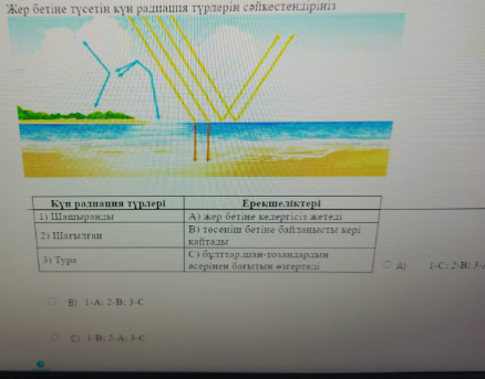 33. Жер бетіне түсетін күн радиация түрлерін сәйкестендір.