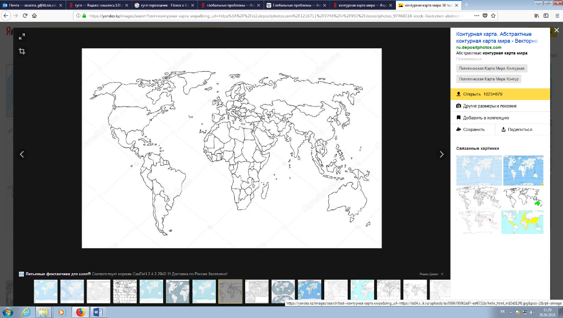 Ученики могут назвать страны или территории, где возникают экологические проблемы. Обсуждая территориальные аспекты глобальных проблем, они открывают тему и цель урока. Определение темы и цели урока. А. Выход на тему урока через картинку и направляющие вопросы. В. Определение цели урока после просмотра видеофильма на основе полученных впечатлений С. Через стартегию «Я думаю...» определить деятельность учащихся на сегодняшнем уроке и навыки, которые необходимо развить.