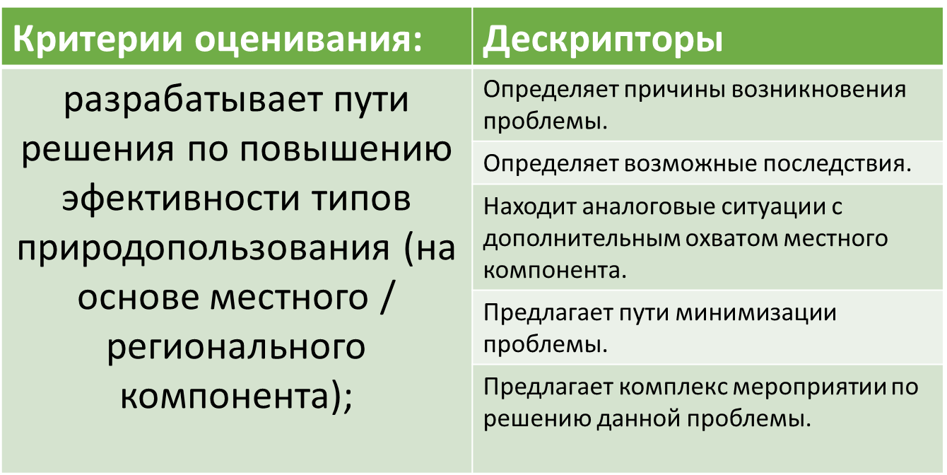 Дискрипторы оценивания: - Определяет территориальные проявления глобального масштаба глобальной проблемы; - анализирует причины и последствия; - оценивает текущую ситуацию; - предлагает пути решения; - Обозначает на контурной карте территориальные проявления по типу глобальной проблемы во всем мире