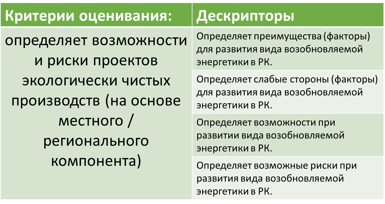 . Взаимооценивание по дескрипторам. Дескрипторы определяет не менее трех общих товаров и трех различий в экспорте и импорте Казахстана с Кыргызстаном и Казахстана с Арменией; -сравнивает по годам объемы торговли Казахстана с Кыргызстаном и Арменией; -определяет минимальные и максимальные объемы торговли Казахстана с Кыргызстаном и Арменией; -предполагает не менее трех товаров экспорта и импорта между Кыргызстаном и Арменией; -формирует вывод о торговых отношениях Казахстана с Кыргызстаном и Арменией в 2012-2015 гг. |