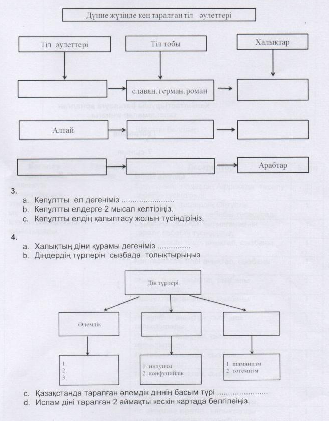 1.Қазақстан (материкке қатысты)..................................................................................................................................орналасқан. Жер көлемі........................................................... Жер көлемі жөнінен ол әлемде-.............................орында 2.Қазақстанның астанасы............................................ Мемлекеттік шекарасының ұзындығы.......................................................................... 3.Қазақстанмен ең ұзақ шеқтесетін мемлекетінің атын жазып..............................................................түзу сызықпен,ал ең аз шектесетін мемлекеттің................................................................................................... ирек сызықпен сызыңдар.