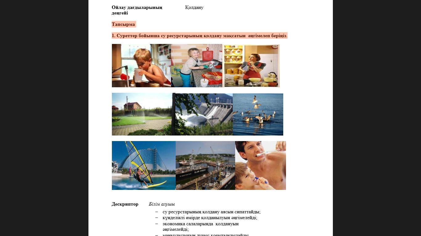 Қолдану:Берілген суреттерді қолдана отырып, оларды