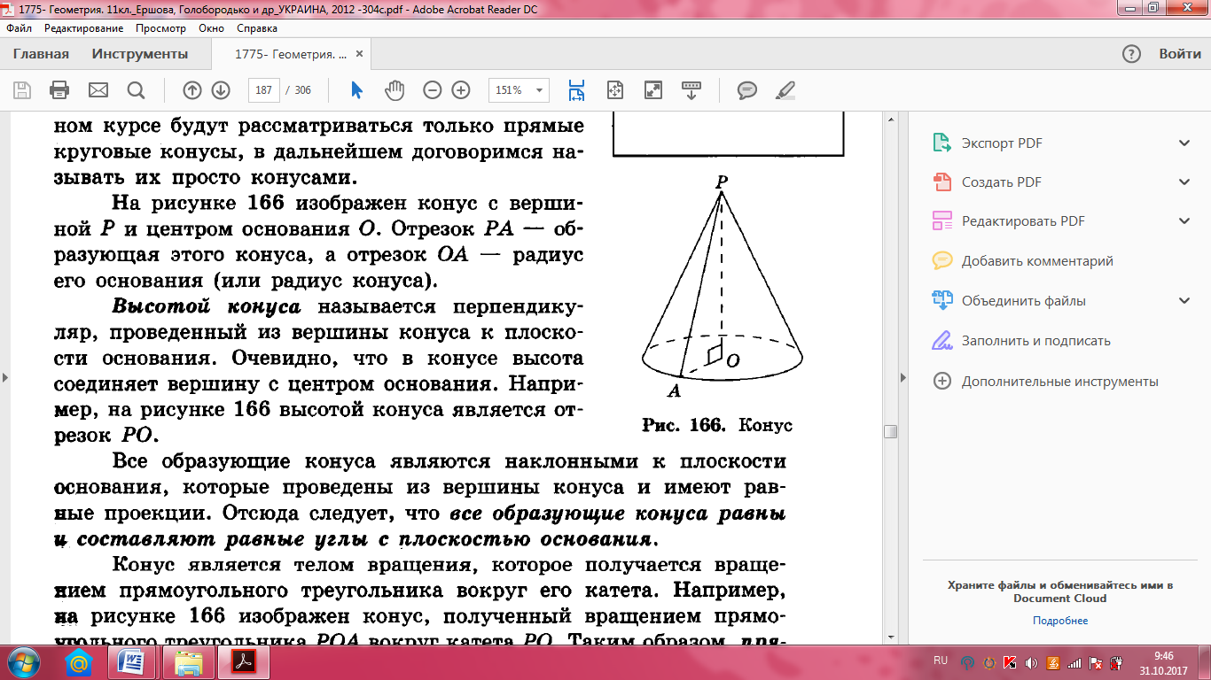 үшбұрыш өзінің катетінен айналдырылған. Гипотенузасы