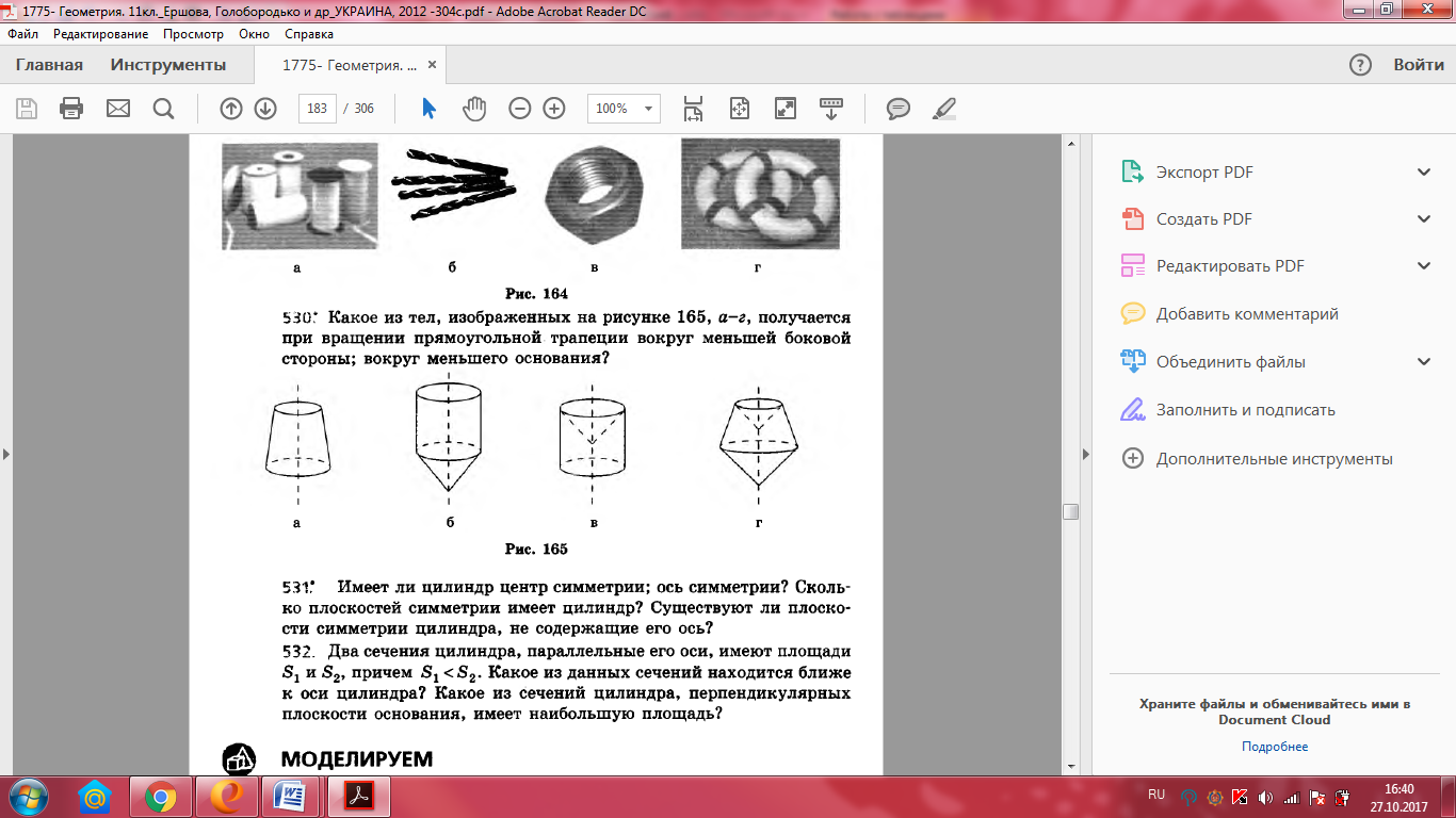 1) Суретте көрсетілген денелердің қайсысы тікбұрышты трапецияның кіші бүйір қабырғасы; кіші табаны бойымен айналса пайда болады?