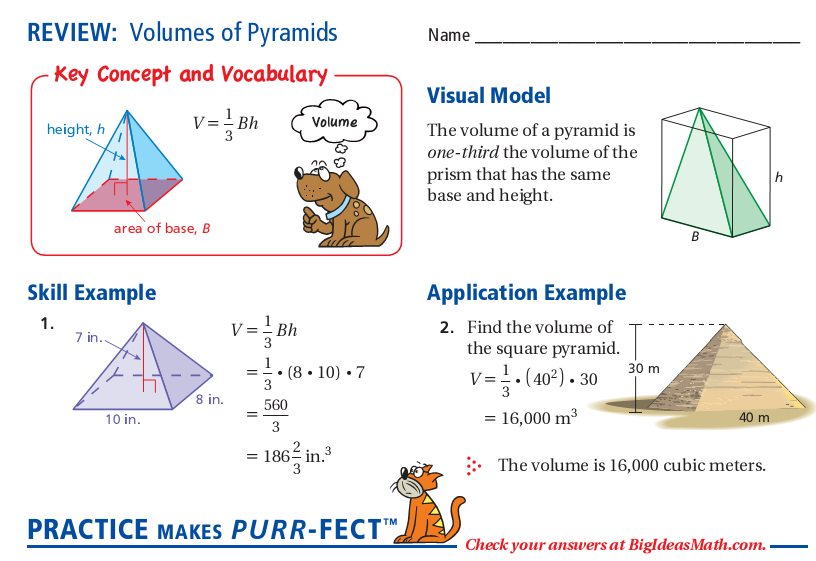 11.3.13 – пирамида және қиық пирамида көлемдерін табу формулаларын білу және оларды есептер шығаруда қолдану; |
