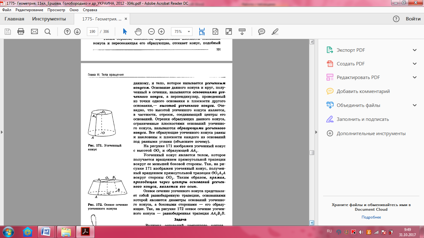 немесе 4)) Тікбұрышты үшбұрыштың гипотенузасы 17 см, катетің біреу 8 см. Тікбұрышты үшбұрыш осы катет бойымен айналады. Айналу дененің табанының ауданын табыңдар. Оқушылар Джигсо метод арқылы келесі тапсырмаларды орындайды: 1. Ұзындығы 25 см болатын АВ кесіндінің үштары цилиндрдің табанының шеңберлерінде жатады. Цилиндрдің биіктігі 15 см, радиусы 26 см болса, берілген кесінді және цилиндр осінің арасындағы ара қашықтықты табыңдар. Жауабы: 24 2. Радиусы 10,5 см, биіктігі 3 см болатын цилиндрдің табанының шеңберлерінде шаршының төбелері жатады. Шаршы қабырғасын табыңдар. Есептің қанша шешімі бар? Жауабы:. 15 см немесе 3 см. Нұсқау. Берілген шаршыңың цилиндр табанының жазықтығына ортогонал проекциясы тіктөртбұрыш немесе кесінді болады. 3.Конустың радиусы 12 м,