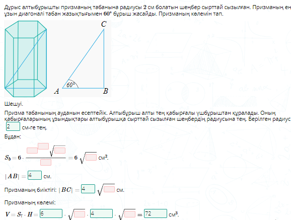 – призма көлемін табу формуласын біледі және оны есептер шығаруда қолданады; |