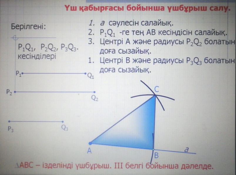 Сабақтың тақырыбы: Үш элементі бойынша үшбұрыш салу