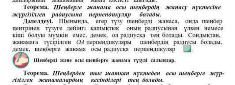 7.1.1.29 центрлік бұрыштың анықтамасы мен қасиеттерін білу және қолдану; 7.1.1.30 шеңбер диаметрі мен хордасының перпендикулярлығы туралы теоремаларды дәлелдеу және қолдану |