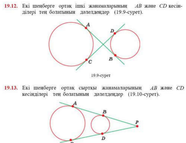 .1.2.12 түзу мен шеңбердің, екі шеңбердің өзара орналасу жағдайларын талдау |
