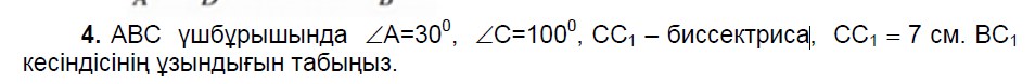3. АВК ұшбұрышында А=750, К=700, КК1 – биссектриса, КК1 9 см. ВК1 кесіндісінің ұзындығын табыңыз.
