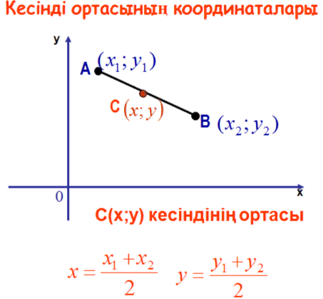 кесінді ортасының координаталарын табуді білу, алгоритімін білу |
