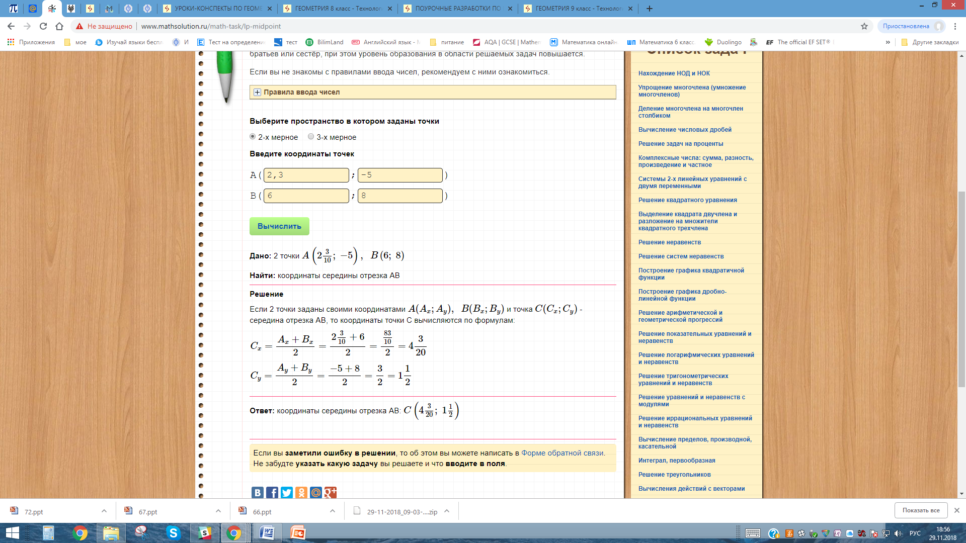 1-мысал АВ кесіндісінің ортасының координаталарын тап А (3;-1), В (-2;4)
