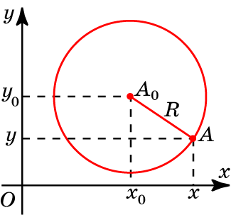 Центрі A0(х0;у0) болатын координаталық жазықтық сызылады. Оның R радиусы белгіленеді. Шеңбер бойынан A(х;у) алайық. Онда A(х;у) және A0(х0;у0) нүктелерінің арақашықтығын табуды білеміз: AA0=√(х-х0)2+(у-у0)2. Суретте осы аралық радиус ретінде берілген, онда AA0=r. Екі жағын квадраттау арқылы біз мынаған келеміз: AA02=r2. AA0 өрнегінің орнына екі нүктенің арақашықтығы формуласын қоятын болсақ, онда мынадай теңдік дұрыс болады: (х-х0)2+(у-у0)2= r2. А Центрі A0(х0;у0) және радиусы r болатын жазықтықтағы шеңбердің координаталық теңдеуі мынадай болады: (х-х0)2+(у-у0)2= r2. Центрі координаталар басында болатын шеңбер үшін жеке қарастырылады Оқулықтан есептер шығарады. №1, №2. |