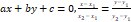 болады. (1) және (2) теңдеуден Қатынастардың теңдігінен шыққан (у-у1)(х2-х1)=(х-х1)( у2-у1) теңдеуін түрлендіргеннен кейін (у2-у1)х+(х1-х2)у+(х2-х1)у1-( у2-у1)х1=0 шығады. Бұл екі нүкте арқылы өтетін түзудің теңдеуі ол х пен у айнымалысына қарағанда 1-ші дәрежелі теңдеу у2-у1=a, х1-х2=b, х2-х1)у1-( у2-у1)х1=c , белгілеулер енгізсек; түзудің жалпы теңдеуі ах+by+c=0 немесе y=kx+n түрінде жазылды. |