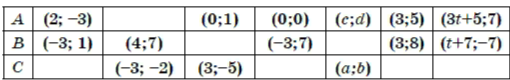4.11. Төмендегі кестені дәптерлеріңе сызып, АВ кесіндісінің ортасы – С нүктесінің координаталарын есептейтін формуланы қолдана отырып, кестенің бос көздерін толтырыңдар |