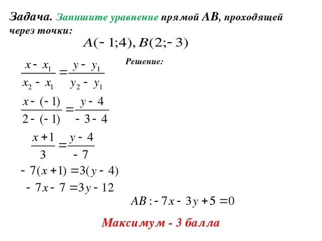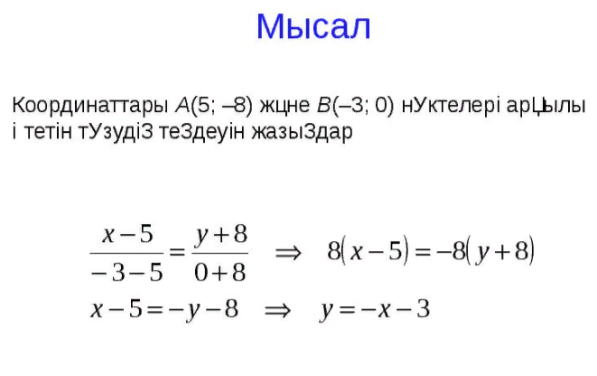 5-тапсырма Координаталары А(-1;4), В(2;-3) болатын нүктелерінен өтетін АВ түзуінің теңдеуін жаз