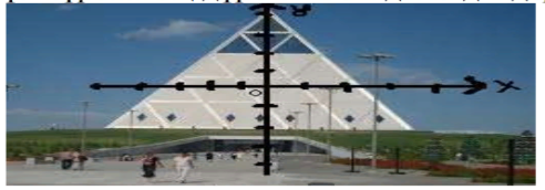 2-тапсырма «Елестету көрінісі» әдісі арқылы оқушылар мәтіннің басты мәнін, елестете отырып жұмыс істей алады. Суретте Астана қаласындағы «Бейбітшілік және келісім» сарайының бір қабырғасы координатадық жазықтықта берілген. 1 бірлікті 10 м деп алып осы үшбұрыштың дұрыстығын дәлелдендер.