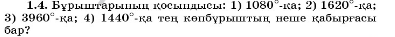 8.3.1.1. Көпбұрыш, дөңес көпбұрыш, көпбұрыш элементтері анықтамаларын білу; 8.3.1.2. Көпбұрыштың ішкі бұрыштарының қосындысының және сыртқы бұрыштарының қосындыларының формулаларын қорытып шығару. |