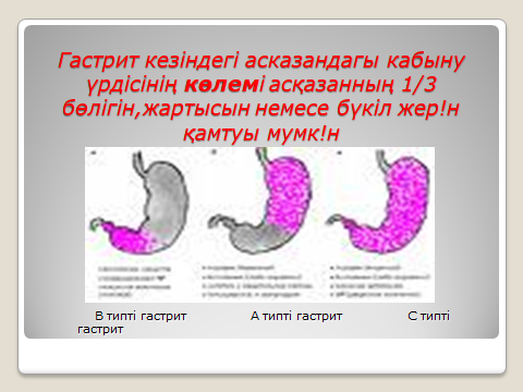 Беткей диффузды антральд!к,созылма-лы антральд!к,интерстициялык,фол-ликулярлык,гиперсекркциялык В тип |