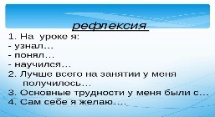 Сегодня на уроке: Я научился (научилась)… Я запомнил(а)… Я узнал(а) новое… Мне понравилось… Я хочу быть похожим на… |