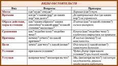 1.Посмотрите видеоурок Обстоятельство - это второстепенный член предложения, обозначающий признак действия, его качество или условие. Отвечает на вопросы как? когда? где? куда? откуда? зачем? почему? при каком условии? вопреки чему?Обстоятельства часто бывают выражены наречиями, деепричастиями и деепричастными оборотами, словосочетаниями. 2. Работа по таблице