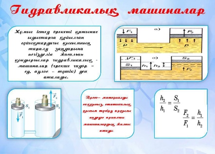Оқыту мақсаттары: 7.3.1.7 – гидравликалық машиналардың жұмыс істеу принципін сипаттау; 7.3.1.8 – гидравликалық машиналарды қолдану кезіндегі күштен ұтысты есептеу |