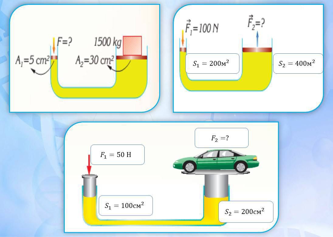 7.3.1.7 – гидравликалық машиналардың жұмыс істеу принципін сипаттау; 7.3.1.8 – гидравликалық машиналарды қолдану кезіндегі күштен ұтысты есептеу |