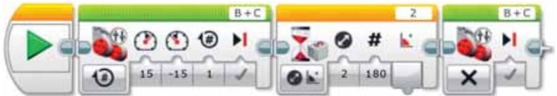 Составь программу, которая рассчитывает угол поворота робота на 180 градусов.