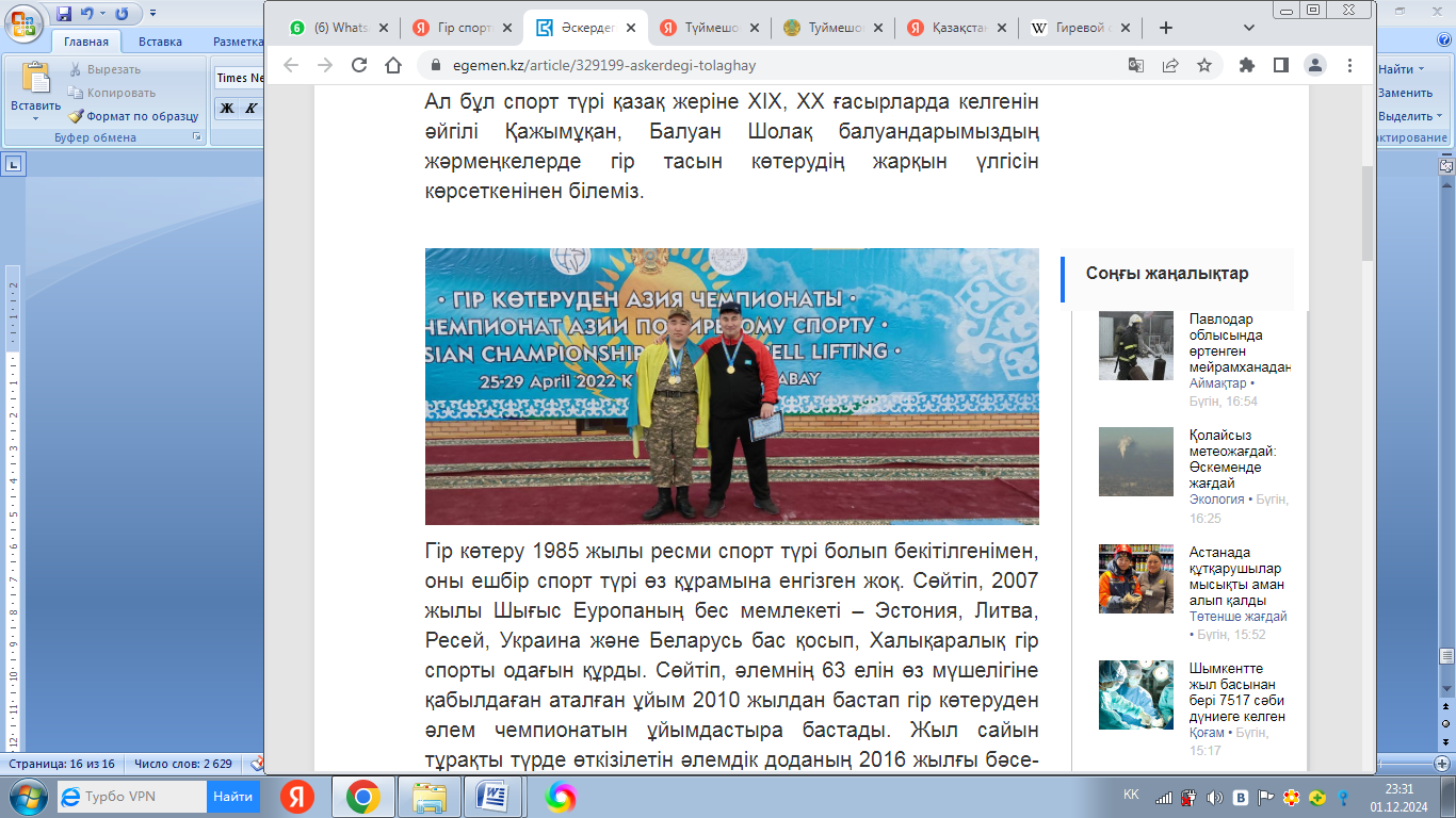 гір тасын көтеруден екі дүркін Қазақстан