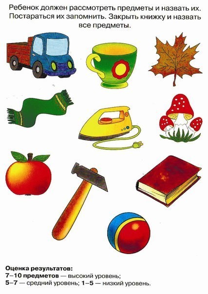 Запомнить и назвать 6–8 предметов, картинок, слов.