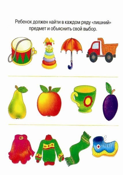 Может ли ребенок объединить несколько предметов в одну группу по основному признаку? К примеру, машина, автобус, электричка — это транспорт; яблоки, груши, сливы — фрукты.