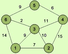 төбесіне баратын қысқа жолдарды анықта. а) N = 6, К = 1, Р= 6 ә) N = 6, К = 2, Р= 5 б) N = 6, К = 4, Р= 6 Флойд алгоритмін қолданып, графтың бір төбесінен екінші төбесіне баратын байланыс матрицасы мен ең қысқа жолды сипаттайтын нәтижелік матрицасын құрастырып, жазыңдар.